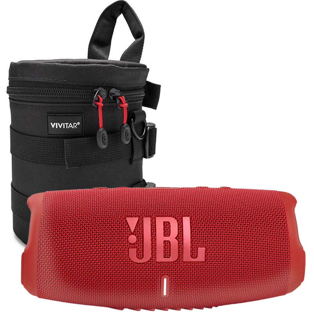 - JBL Charge 5 Portable Waterproof Bluetooth Speaker with Powerbank (Red) + Premium Case 10 Inches Well Padded With Belt Loop and Neck Strap