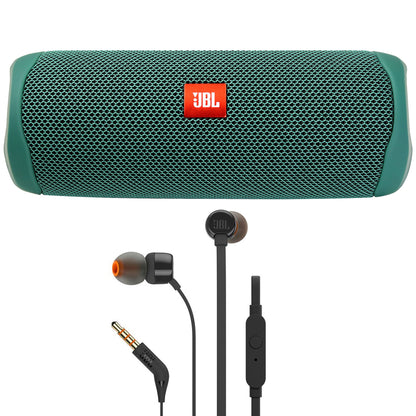 JBL FLIP 5 WATERPROOF BLUETOOTH SPEAKER (GREEN, ECO EDITION) + JBL T110 IN-EAR HEADPHONES BLACK