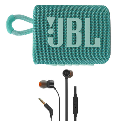JBL GO 3 PORTABLE BLUETOOTH SPEAKER TEAL + JBL T110 IN EAR HEADPHONES