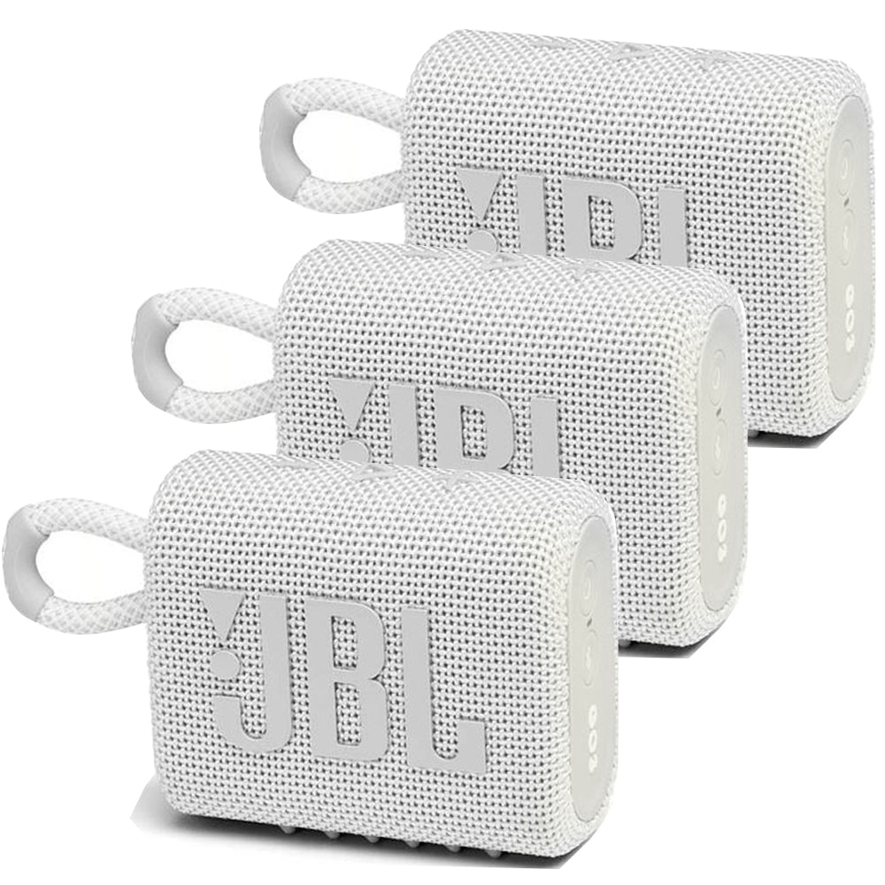 3x JBL Go 3 Portable Waterproof Wireless IP67 Dustproof Outdoor Bluetooth Speaker (White)
