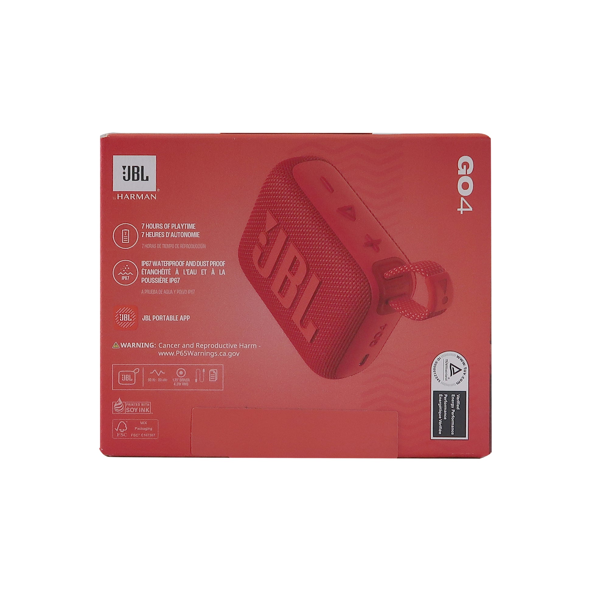 With an eye on sustainability, JBL partially constructed the Go 4 from recycled materials, and packaged it in FSC-certified paper that's printed with soy ink.