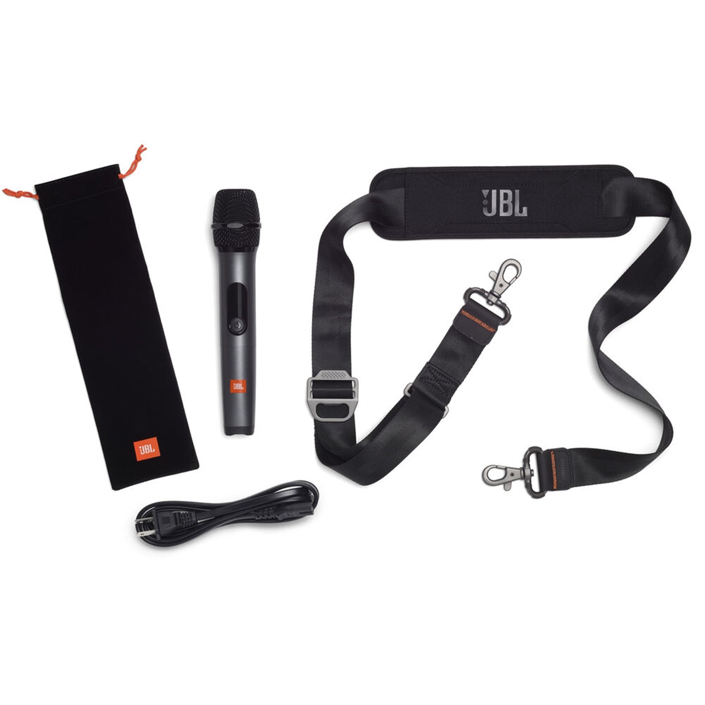 • A JBL wireless microphone with a range of up to 33' is included, so you can sing along without wires.