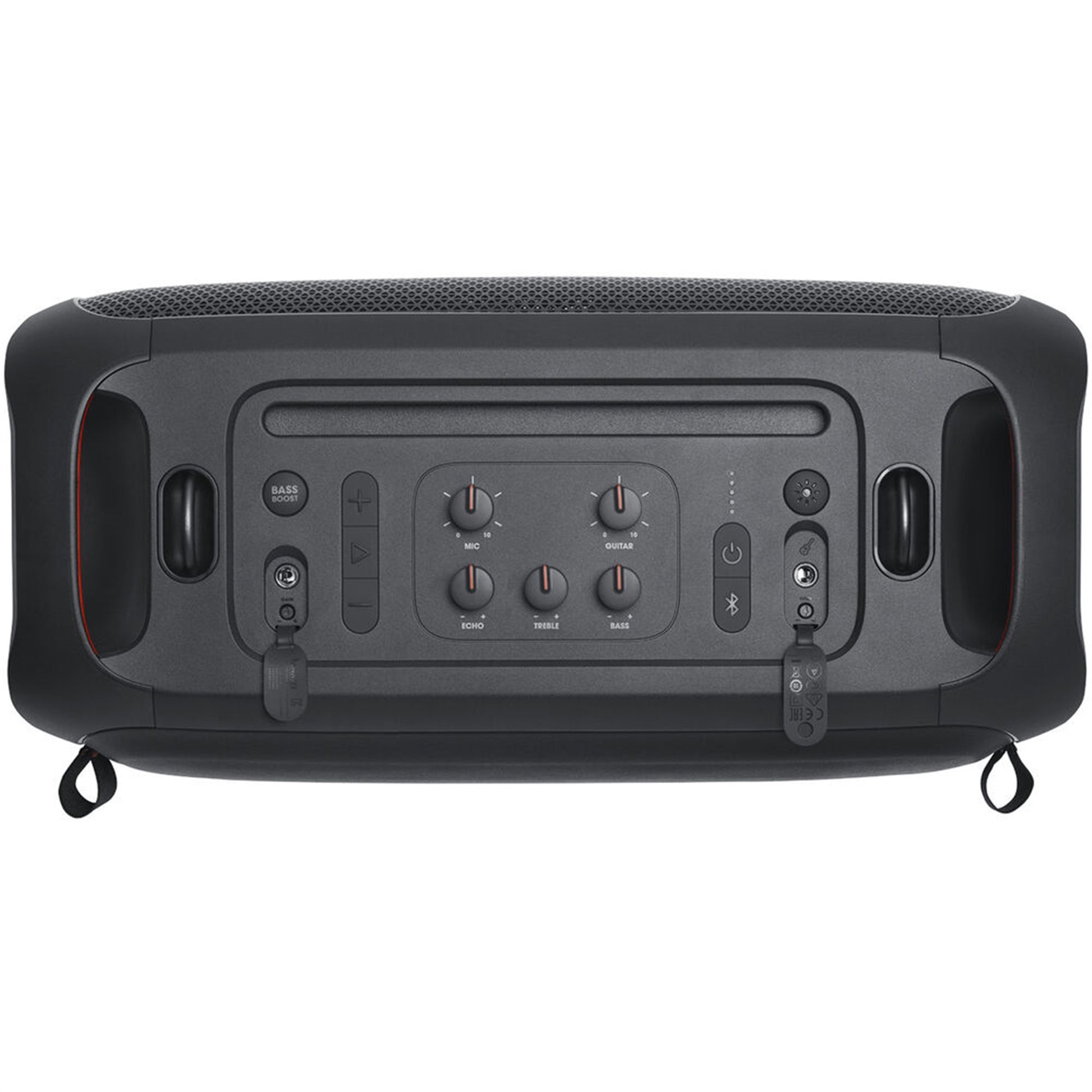 • The included shoulder strap lets you carry the PartyBox On-The-Go with ease, and a bottle opener built into the strap helps you stay hydrated while partying.