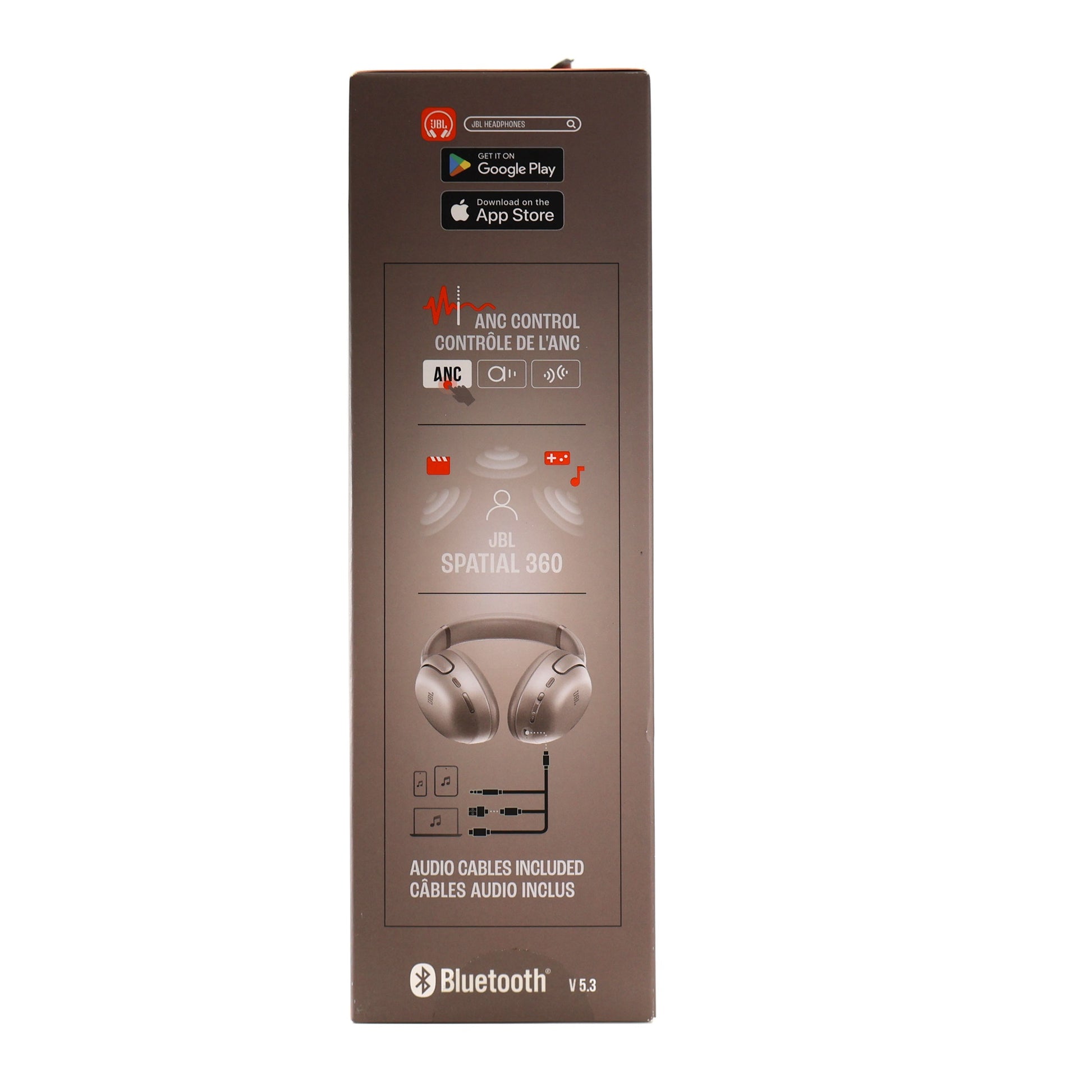 JBL Tour One M3 - Wireless Over-Ear Noise Cancelling Headphones - LatteLose yourself in lossless audio. Make the miles disappear with music and movies from the in-flight entertainment system using the included 3.5mm cable (a USB-C cable is also included). Or go wireless with stunning Hi-Res Audio via Bluetooth. JBL Spatial 360 sound with integrated head tracking makes music and movies even more immersive. True Adaptive Noise Cancelling 2.0 tunes out distracting ambient noise.