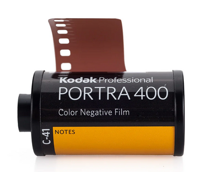 Kodak's Professional Portra 400 is a high-speed daylight-balanced color negative film offering a smooth and natural color palette that is balanced with vivid saturation and low contrast for accurate skin tones and consistent results. Utilizing the cinematic VISION Film technology, this film also exhibits a fine grain structure with very high sharpness and edge detail. A micro-structure optimized T-GRAIN emulsion makes it especially well-suited for scanning applications, and advanced development accelerators offer extended versatility when enlarging. This film has a nominal sensitivity of ISO 400/27° and is particularly well-suited to portrait and wedding photography, as well as nature, travel, and outdoor shooting with moving subjects, or when the lighting cannot be controlled.