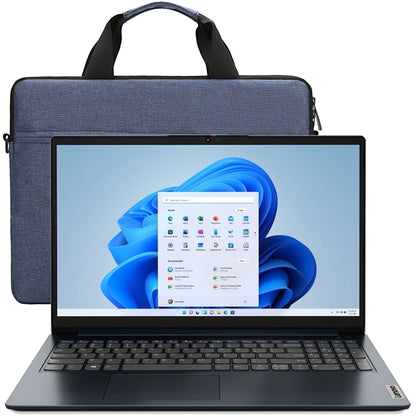 LENOVO IDEAPAD 1 15.6" FHD TOUCHSCREEN LAPTOP - INTEL CORE I5 - 8GB MEMORY WITH 512GB SSD STORAGE (ABYSS BLUE) + SPLASH PROOF WEAR RESISTANT POLYESTER FIBER COMPUTER BRIEFCASE LAPTOP BAGS FOR 15.6" LAPTOPS