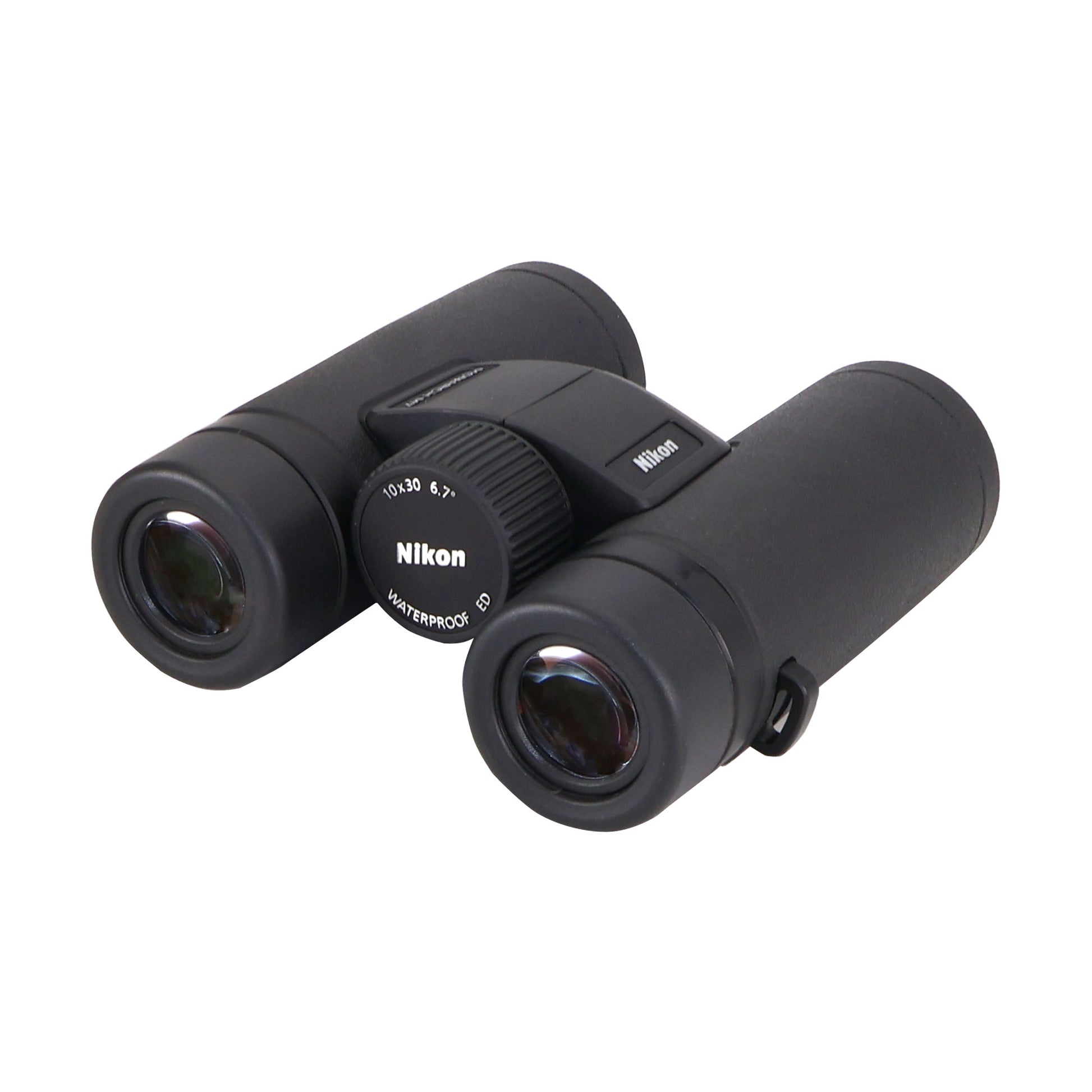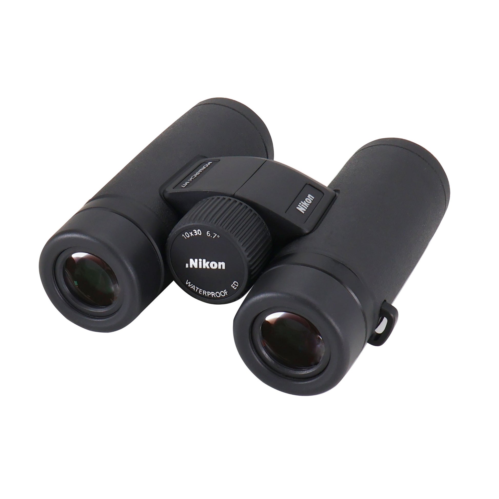 Nikon 10x30 Monarch M7 Binoculars Boasting a wide viewing angle that presents an immersive viewing experience, Nikon's black 10x30 Monarch M7 Binoculars have the same focus on comfort and performance as previous iterations with an updated look and compact design. Featuring extra-low dispersion glass elements with anti-reflection fully multicoated optics and highly reflective dielectric-coated, phase-corrected roof prisms complemented by exterior lens coatings that repel water and oil, the Monarch M7 produces bright and clear high-contrast images with true-to-life color and minimal color fringing.
