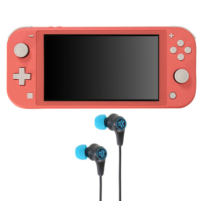 NINTENDO SWITCH LITE CORAL + JLAB PLAY GAMING WIRELESS BLUETOOTH EARBUDS BLACK/BLUE