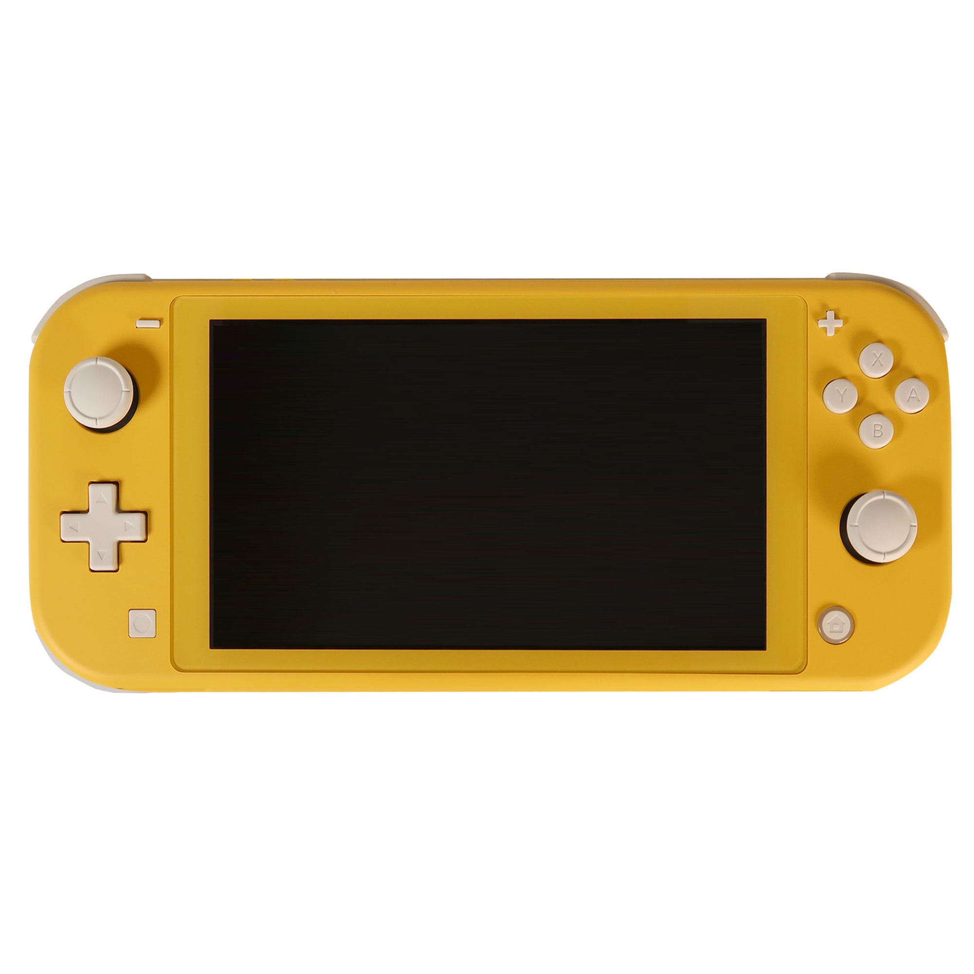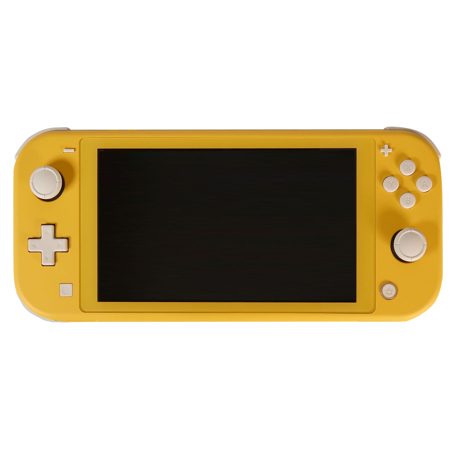 The Yellow Nintendo Switch Lite is built for handheld gaming only and features a light, sleek design with built-in controllers and a D-pad. The Nintendo Switch Lite has a 5.5" capacitive touchscreen with a 1280 x 720 resolution.
