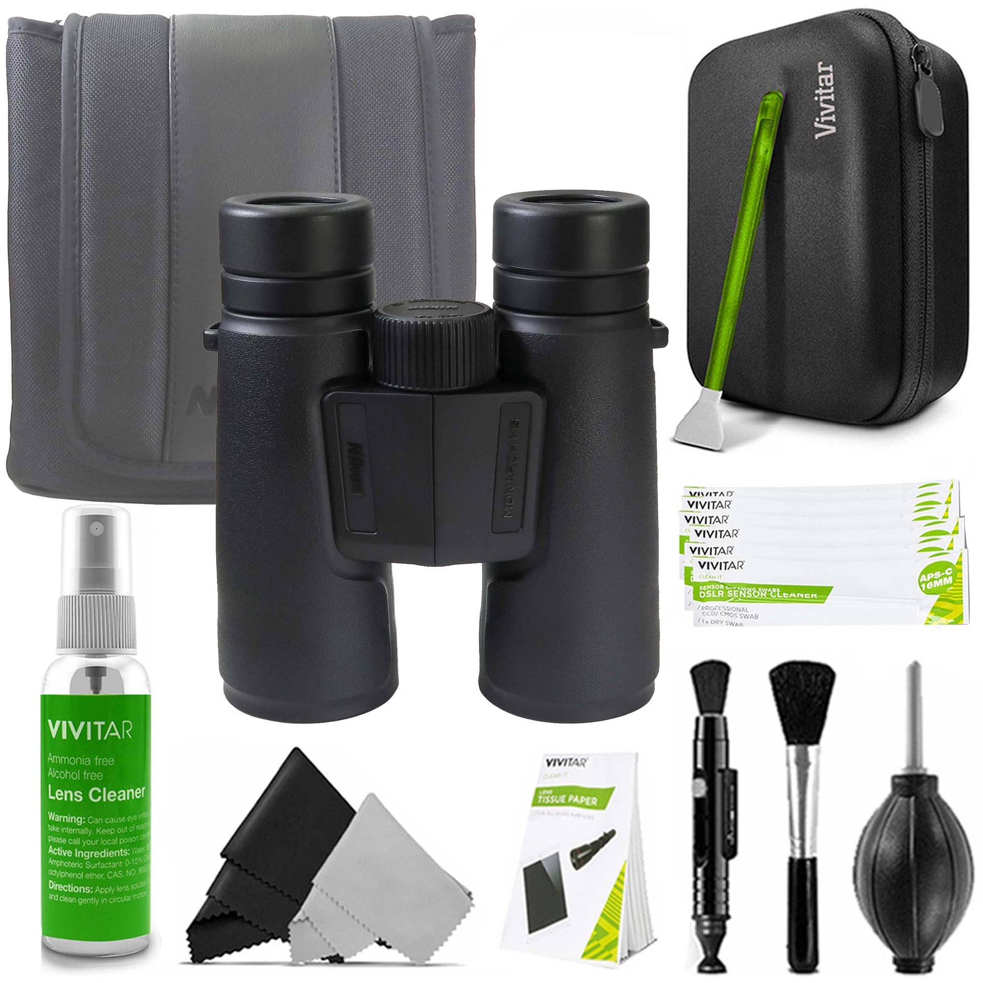 Sensor cleaning swabs absorb and sweep away particles and smudges from binoculars sensors Cleaning cloth, pen and brush will keep all surfaces of your binoculars free from dirt, dust and other damaging particles Hard carrying case protects the entire cleaning kit and allows for easy and convenient storage.