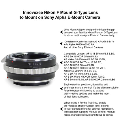 - Innovexee Lens Mount Adapter Compatible with Nikon F Mount G-Type Lens