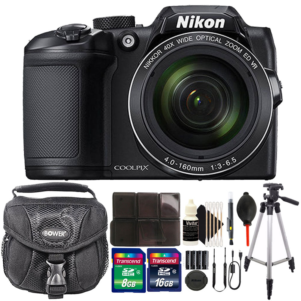 The black COOLPIX B500 Digital Camera from Nikon features a 16MP 1/2.3" BSI CMOS sensor for high-resolution imagery as well as Full HD 1080p video. This sensor's construction utilizes a stacked backside-illuminated design to improve clarity and image quality when working in dimly-lit conditions. The 40x optical zoom lens provides a 35mm equivalent focal range of 22.5-900mm, covering wide-angle to telephoto perspectives to suit working in a wide variety of environments. Further subject magnification can be achieved using the 80x Dynamic Fine Zoom that effectively doubles the camera's reach.