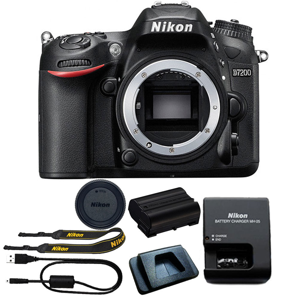 Nikon D7200 D-SLR Camera Poised to deliver in the most challenging of situations, Nikon's D7200 is a versatile DX-format DSLR that caters to both still photography and video users. Featuring a 24.2MP CMOS sensor which lacks an optical low-pass filter, and an EXPEED 4 image processor, the D7200 is able to record up to 6 fps at full-resolution, or 7 fps at a 1.3x crop, with a 100-frame buffer for extended high-speed shooting. This sensor and processor combination also avails a top native sensitivity of ISO 25600, which can further be expanded to black & white-dedicated ISO 51200 and ISO 102400 sensitivities. Full HD 1080p video recording is supported up to 60 fps, and in-camera time lapse shooting with automatic exposure smoothing is possible for up to 9,999 consecutive frames. In addition to the sheer imaging benefits, the D7200 also incorporates a large 3.2" 1,229k-dot LCD monitor, dual SD card slots, and features built-in snapbridge Wi-Fi connectivity with NFC for simple linking of your mobile device. Capable of performing in both still and video realms, the D7200 is an all-around shooter that blends sophisticated imaging technologies with refined handling and design. Rounding out its feature-set, the D7200 is also characterized by an apt 51-point AF system, with 15 cross-type points, for quick and accurate focusing in a variety of conditions. The 3D Color Matrix Metering II system, which utilizes a 2,016-pixel RGB sensor, also benefits the focusing capabilities in addition to providing precise exposure metering capabilities. Further realizing a complete imaging solution, a series of Picture Control profiles can be applied to refine the color and tonal handling of imagery. 24.2MP DX-Format CMOS Sensor EXPEED 4 Image Processor No Optical Low-Pass Filter 3.2" 1,229k-Dot LCD Monitor