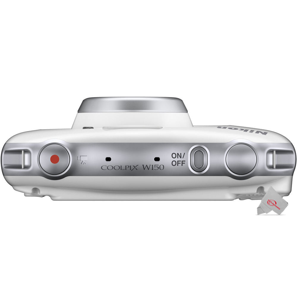 Designed for holidays, beach days, or every day, the white Nikon COOLPIX W150 is a sleek point-and-shoot camera characterized by its impressive durability and intuitive design. Perfect for use on adventures or for an aspiring young photographer, the W150 sports a 13.2MP CMOS sensor and NIKKOR 3x zoom lens to produce high-resolution stills and Full HD video in a variety of situations. Sensitivity from ISO 125-1600 along with Electronic VR also benefit working in a variety of lighting conditions to keep up with all-day shooting. Its physical design is water, shock, dust, and freezeproof and features a rear 2.7" 230k-dot LCD for composing your shots and reviewing imagery. In-camera image editing enables quick fine-tuning of your shots and SnapBridge wireless connectivity also lets you share your snaps while on the go.