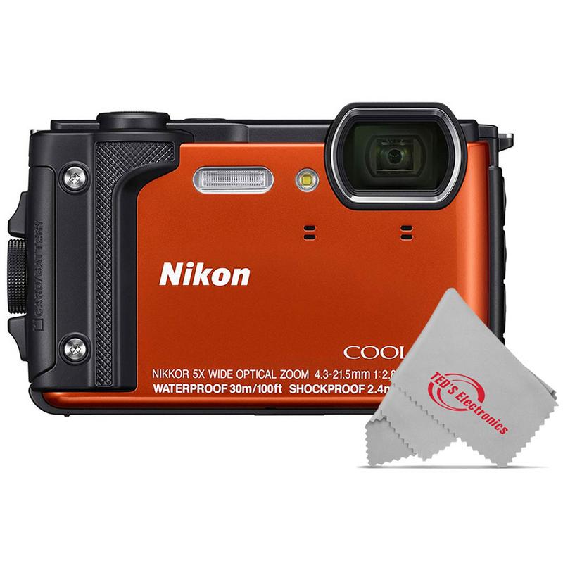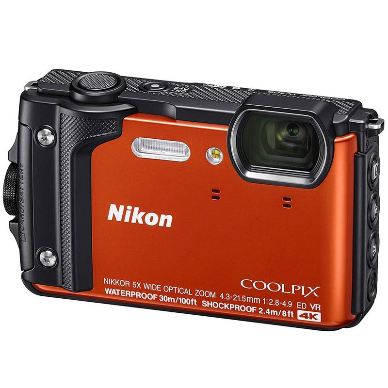 Characterized by its tough exterior, the Nikon COOLPIX W300 is a sleek point-and-shoot featuring a reinforced physical design, along with apt multimedia imaging capabilities. Designed for adventures, and even everyday mishaps, the camera is waterproof-rated for depths up to 100' as well as shockproof for falls from up to 7.9' high and freezeproof for temperatures down to 14°F. In regard to imaging, a high-resolution 16MP BSI CMOS sensor benefits both stills shooting as well as video recording, with the ability to shoot continuously up to 7 fps, record video at UHD 4K/30p, and produce low noise imagery with a sensitivity range of ISO 100-6400. A 5x optical zoom lens spans wide-angle to telephoto focal lengths, and Vibration Reduction helps to minimize the appearance of camera shake for sharper handheld imagery. Additionally, the W300 also incorporates SnapBridge wireless connectivity, which uses Bluetooth and Wi-Fi for seamlessly sharing imagery and remotely controlling the camera from a linked device. Built-in GPS is also available for geotagging your imagery in-camera.