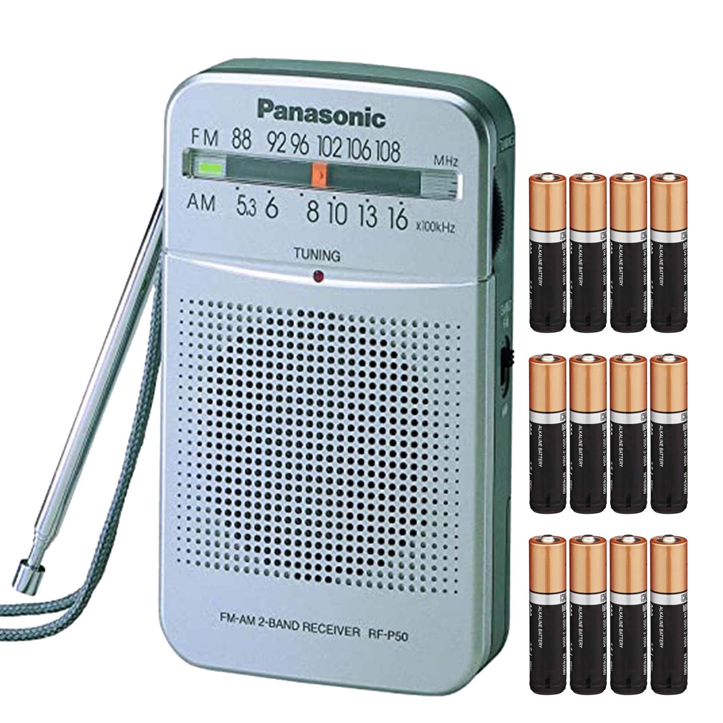 Enjoy FM and AM radio nearly anywhere with the silver Panasonic RF-P50D Portable FM/AM Radio. Operating on battery power, it can be used anywhere radio reception is available. The visually impaired will appreciate the large dial scale, fluorescent pointer and red tuning LED, while also taking advantage of the AFC function for AM tuning, which locks in a nearby station and reduces noise while tuning.