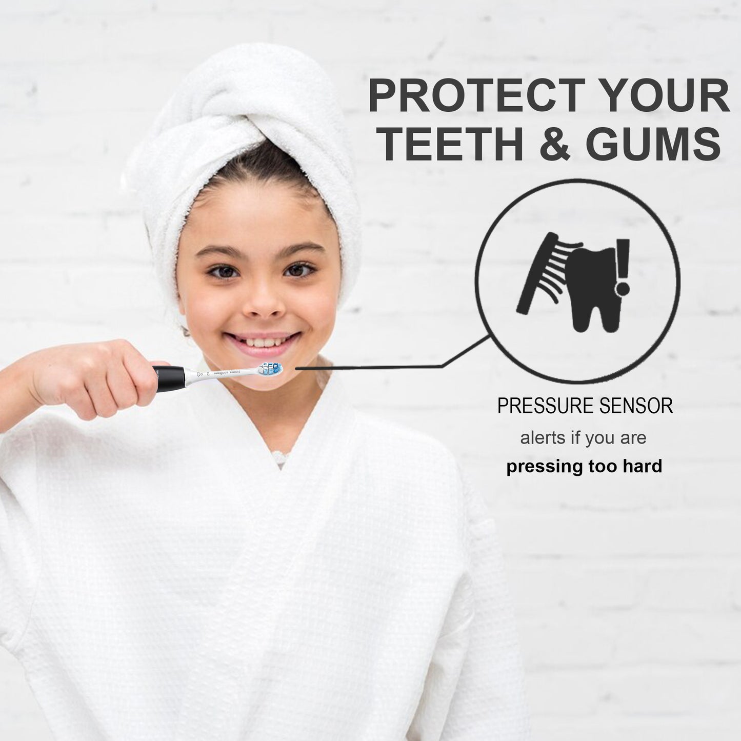 - Pressure sensor protects teeth and gums from excess brushing pressure while improving your gum health up to 100% more vs a manual toothbrush