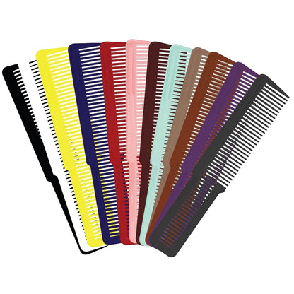 Pick a color, any color! The 12 pack of large styling combs is available in assorted colors to suit everyone’s preference. Separate yourself from your co-workers by using a color unique to you and your station. Individual combs are available for sale in various colors by request.