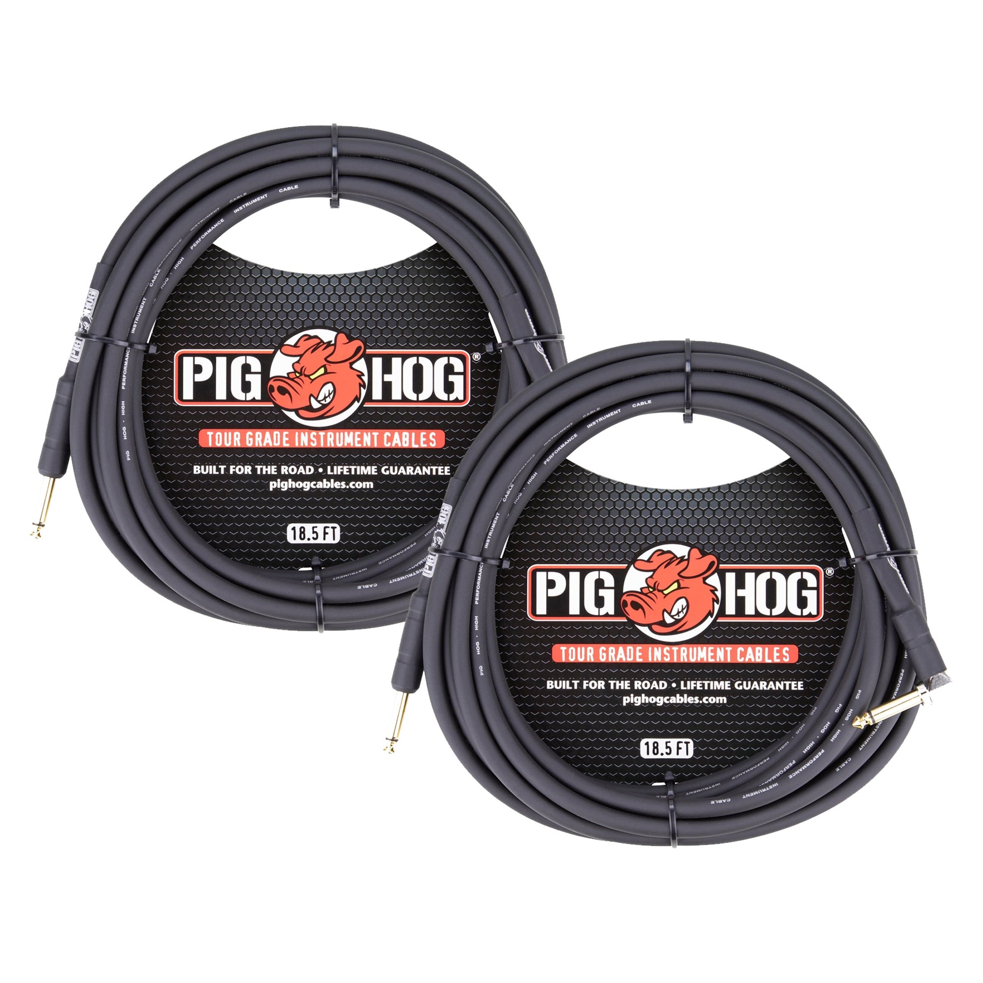 - 2x Pig Hog Tour Grade 18.5ft 1/4" - 1/4" 8mm Instrument Cable Straight to Right Angle Connectors