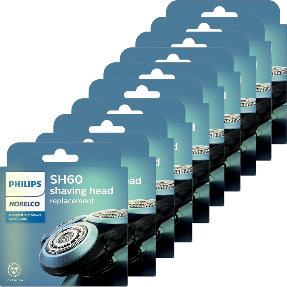 Ten Philips Norelco Replacement Head for Series 6000 Shavers, Black, 1 Count