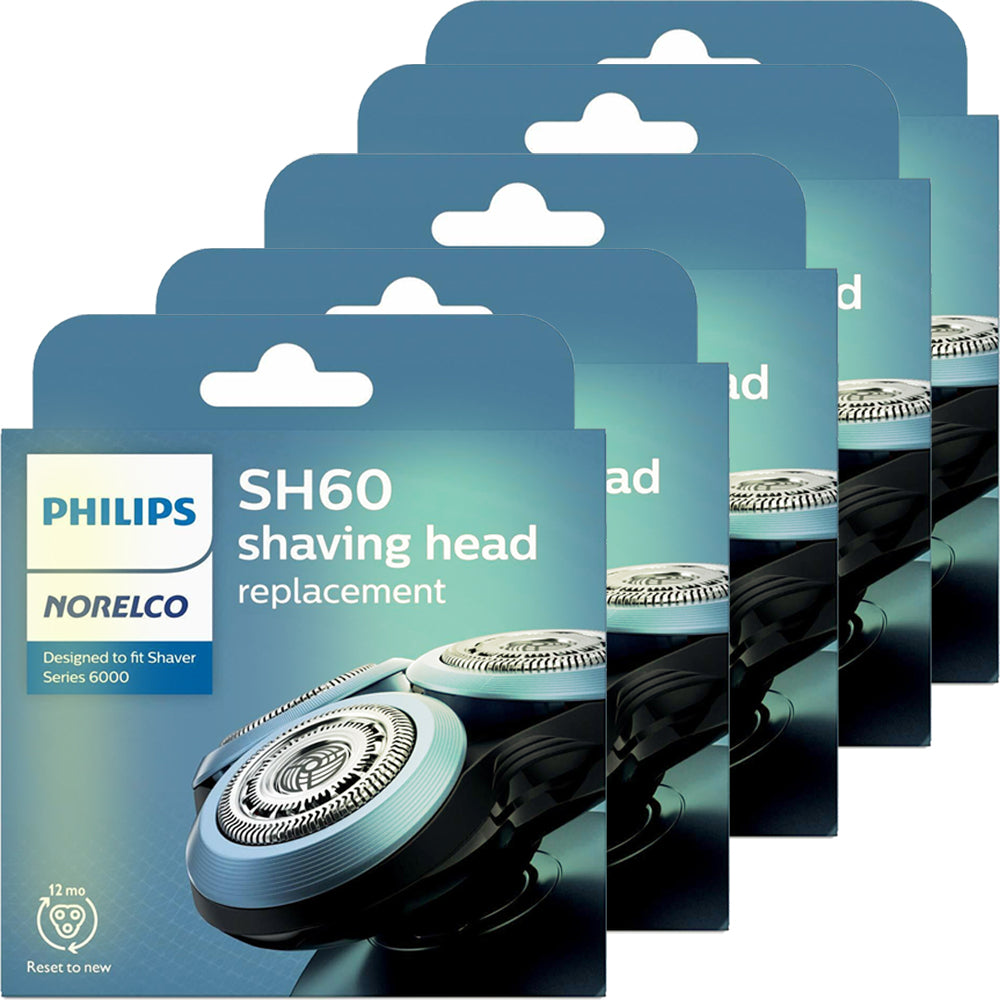 Five Philips Norelco Replacement Head for Series 6000 Shavers, Black, 1 Count