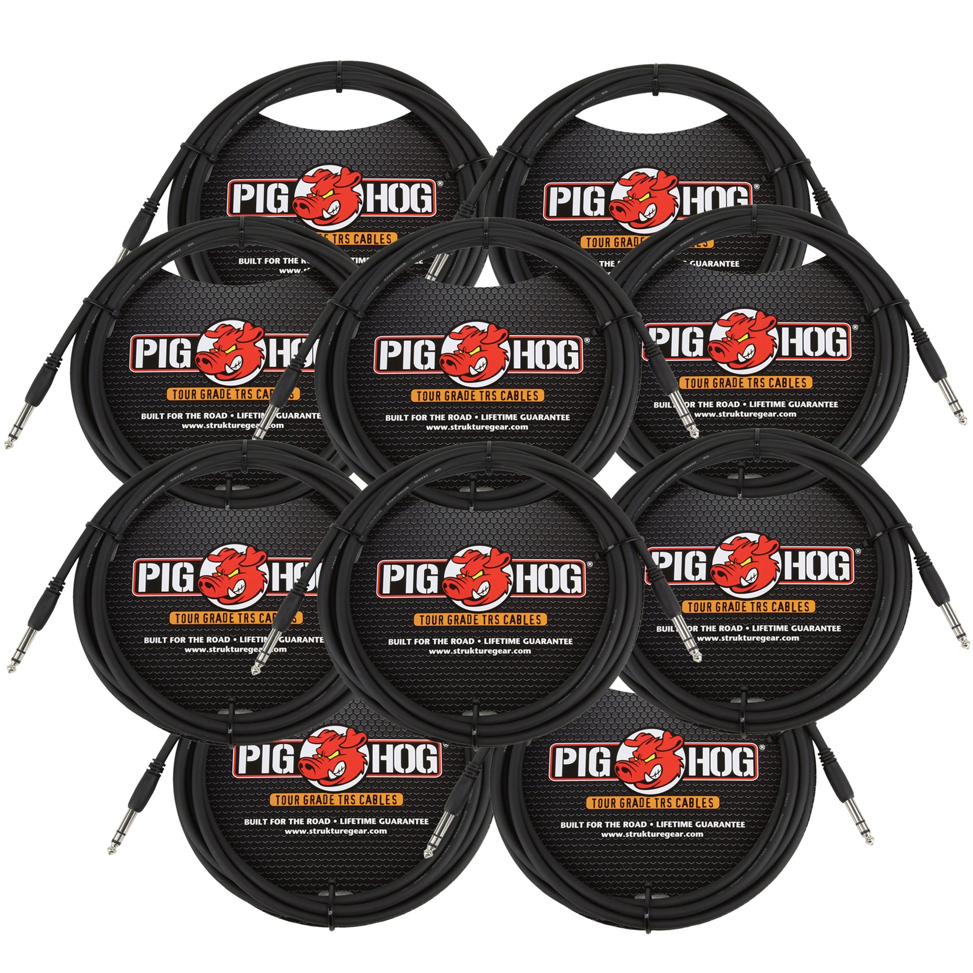 - 10x Pig Hog 10ft 1/4" TRS - 1/4" TRS Cable