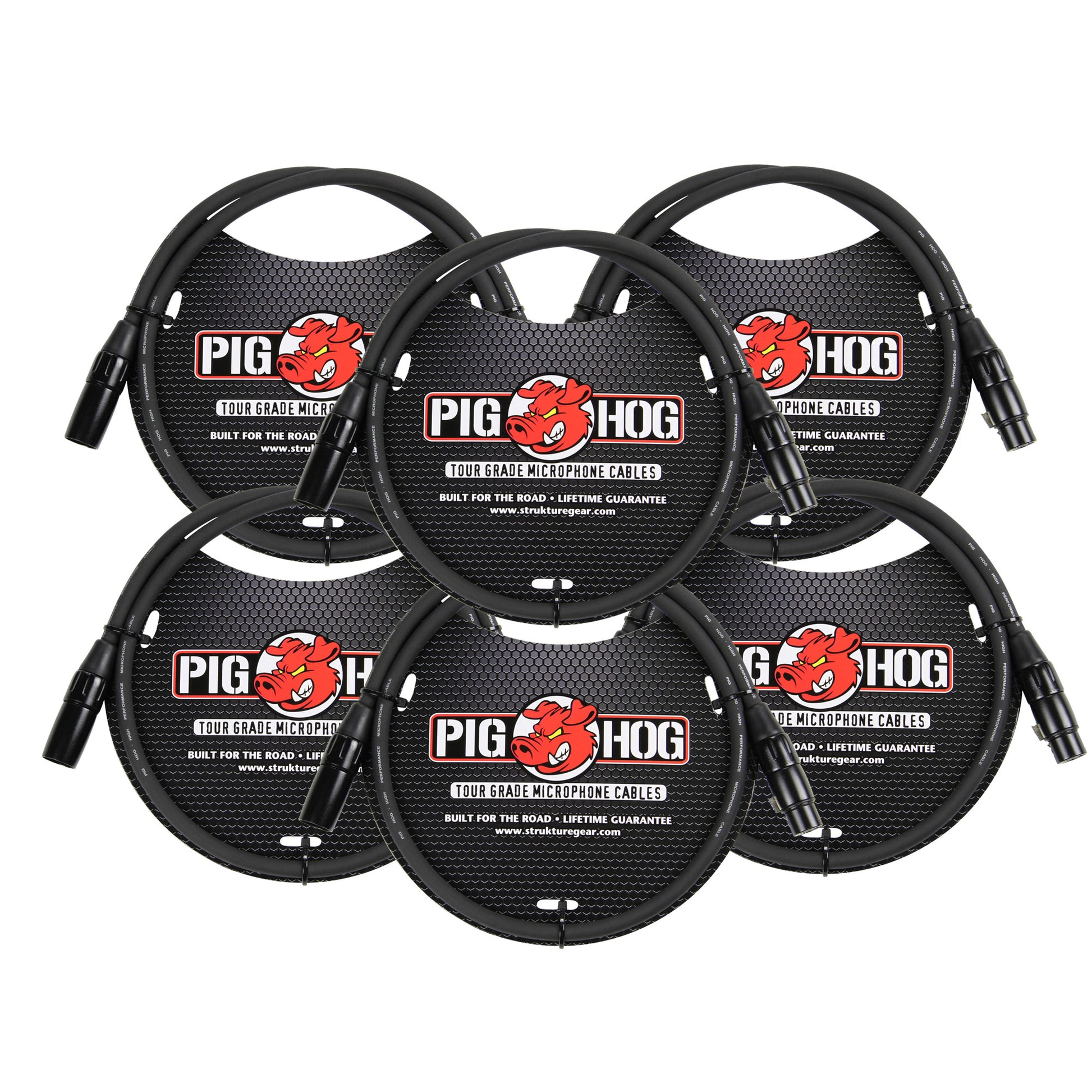 - 6x Pig Hog 8mm XLR Microphone Cable Male to Female 3 Ft Fully Balanced Premium Mic Cable
