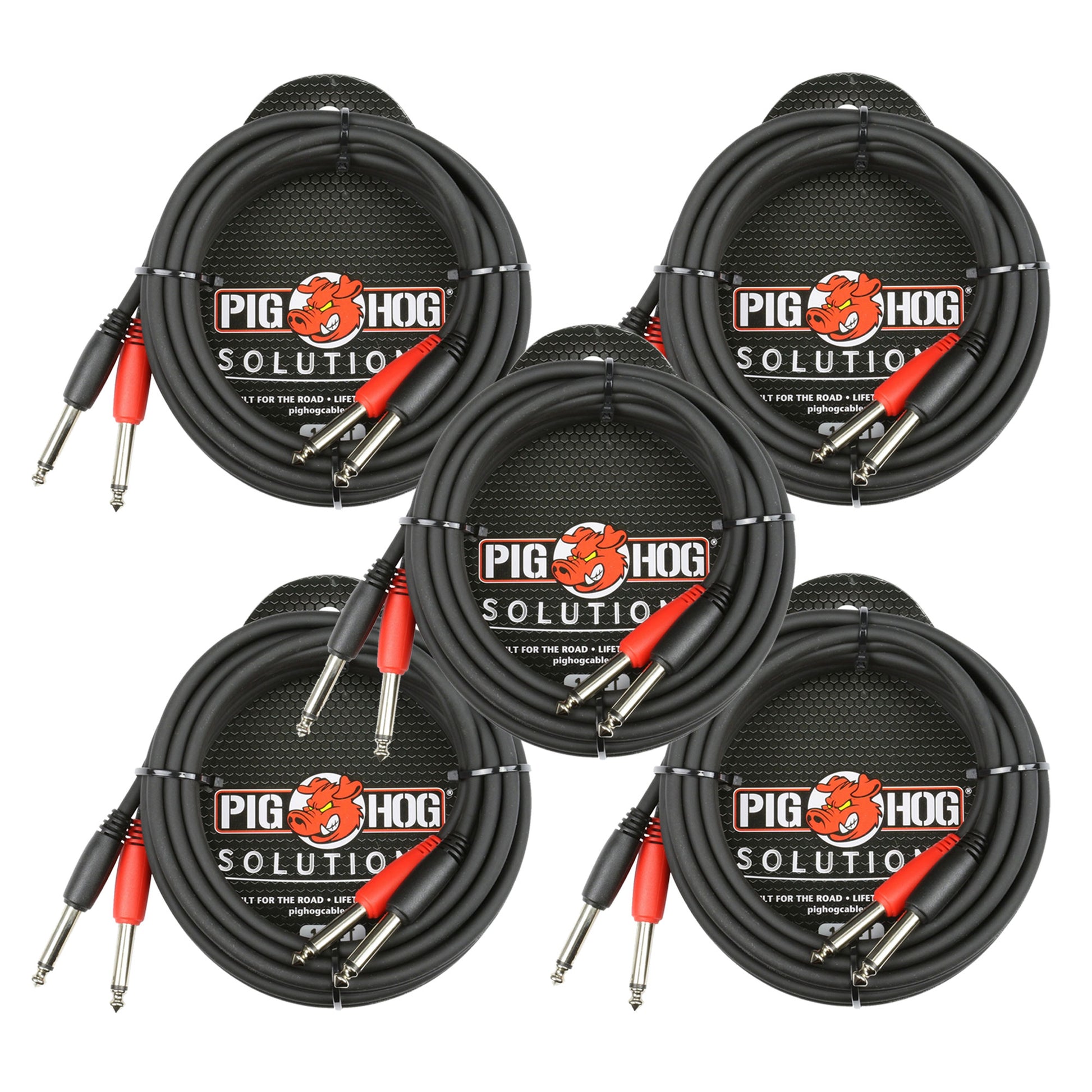 - 5x Pig Hog Dual 1/4" Mono (Male) Cable, 10 ft - PD-21410