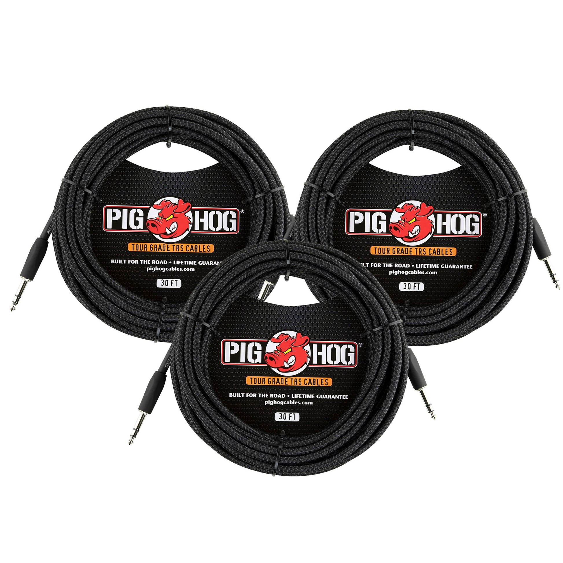 - 3x Pig Hog PTRS30BK Black Woven TRS Cable 30ft