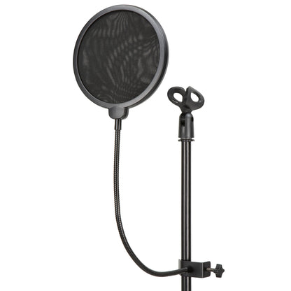 The Pig Hog microphone pop filter makes recording a breeze! The dual-layer pop filter blocks breathy blasts and arrests air movement while allowing sound to slip through easily. This allows you to achieve amazing, clean recordings by preventing plosives and hissing. The adjustable clamp can be attached to a wide variety of stands, and the durable metal gooseneck adjusts to virtually any angle and distance.- 5.9 inch diameter dual-layer pop filter.