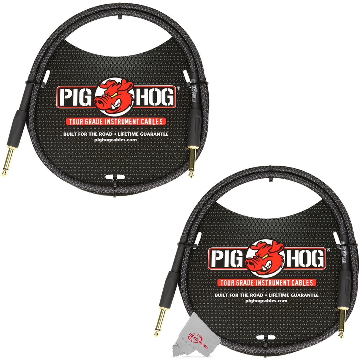 This Kit from Teds Electronics Includes: Pig Hog Black Woven Patch Cable 1/4" to 1/4" 3 ft Straight PCH3BK Tour Grade Instrument Cable - 2 Units