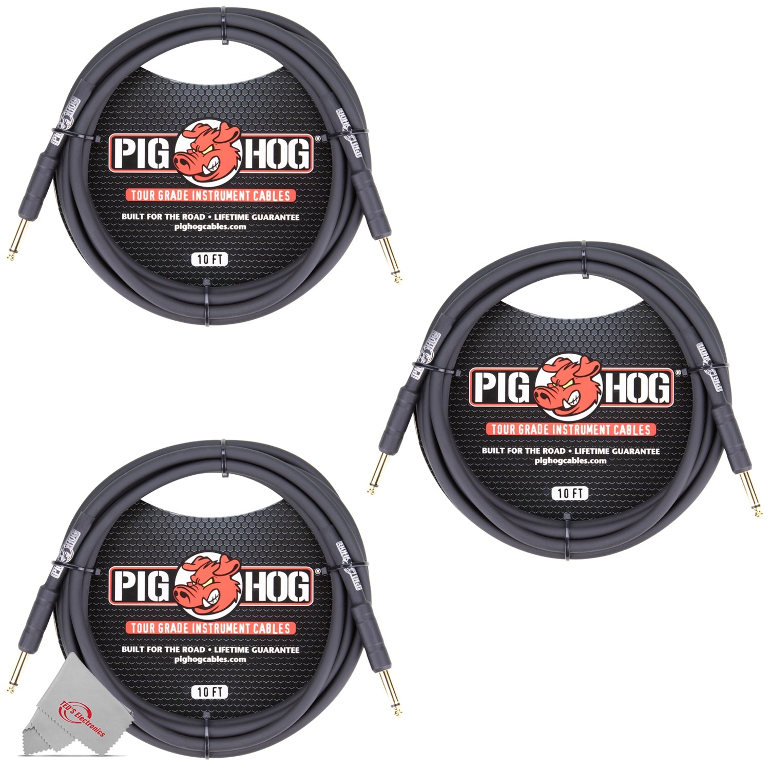 This Kit from Teds Electronics Includes: Pig Hog Tour Grade 10ft Instrument Cable 1/4 Inch to 1/4 Inch Straight Connectors Black - PH10 - 3 Units