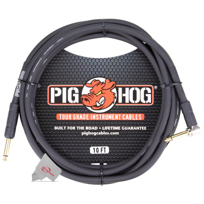 Pig Hog Tour Grade 10ft Instrument Cable 1/4 Inch to 1/4 Inch Right Angle to Straight Connectors - PH10R