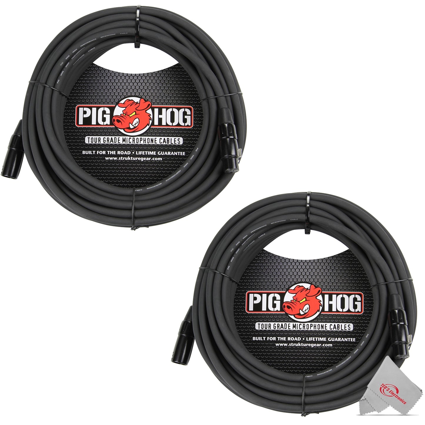 This Bundle from Teds Electronics Includes: Pig Hog 8mm XLR Microphone Cable Male to Female 50 Ft Fully Balanced Premium Mic Cable - 2 Units