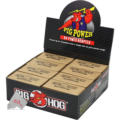 Don't let your power adapter hog up more than one space on your power strip! Pig Power is a 9V power supply with 1000 mA can power up to 10 pedals at once, with a minimal design that requires just a single outlet. The adapter features a generous 10ft cable allows you to set up far from a power source, and 110-240c compatibility is ready for international use. Works with most effects pedals on the market, including Boss(R) PSA or ACA, Dunlop(R) ECB-03, Zoom(R) AD-0006, Danelectro(R) DA-1, DOD(R) PS-200R, Ibanez(R) AC-109, Korg(R) A30950, Morley(R) 9V, and more! One year limited warranty.