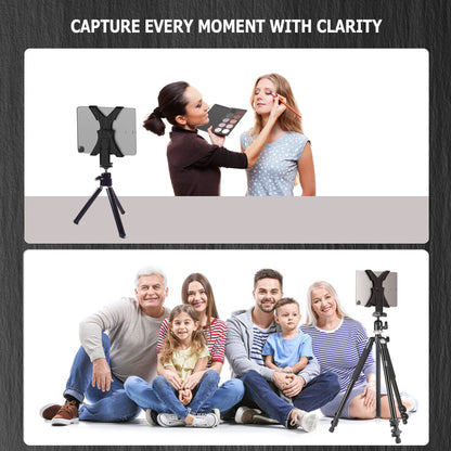 Introducing our Universal Tablet Tripod Mount. This versatile mount allows you to securely attach your tablet to a tripod, monopod, selfie stick, light stand, and more, offering stability and flexibility for a variety of uses.