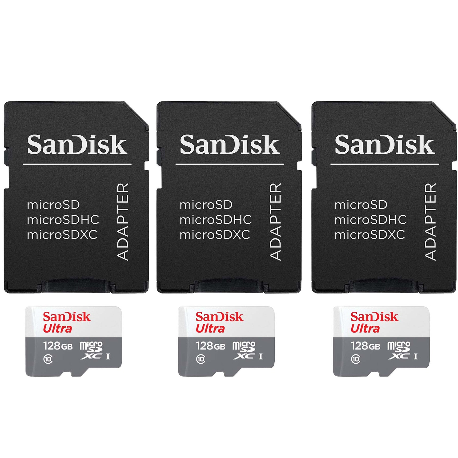 3x SanDisk 128GB Ultra MicroSDXC UHS-I Memory Card with Adapter
