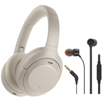 SONY WH-1000XM4 WIRELESS NOISE CANCELING OVER-THE-EAR HEADPHONES WITH GOOGLE ASSISTANT AND ALEXA - SILVER + JBL T110 IN EAR HEADPHONES