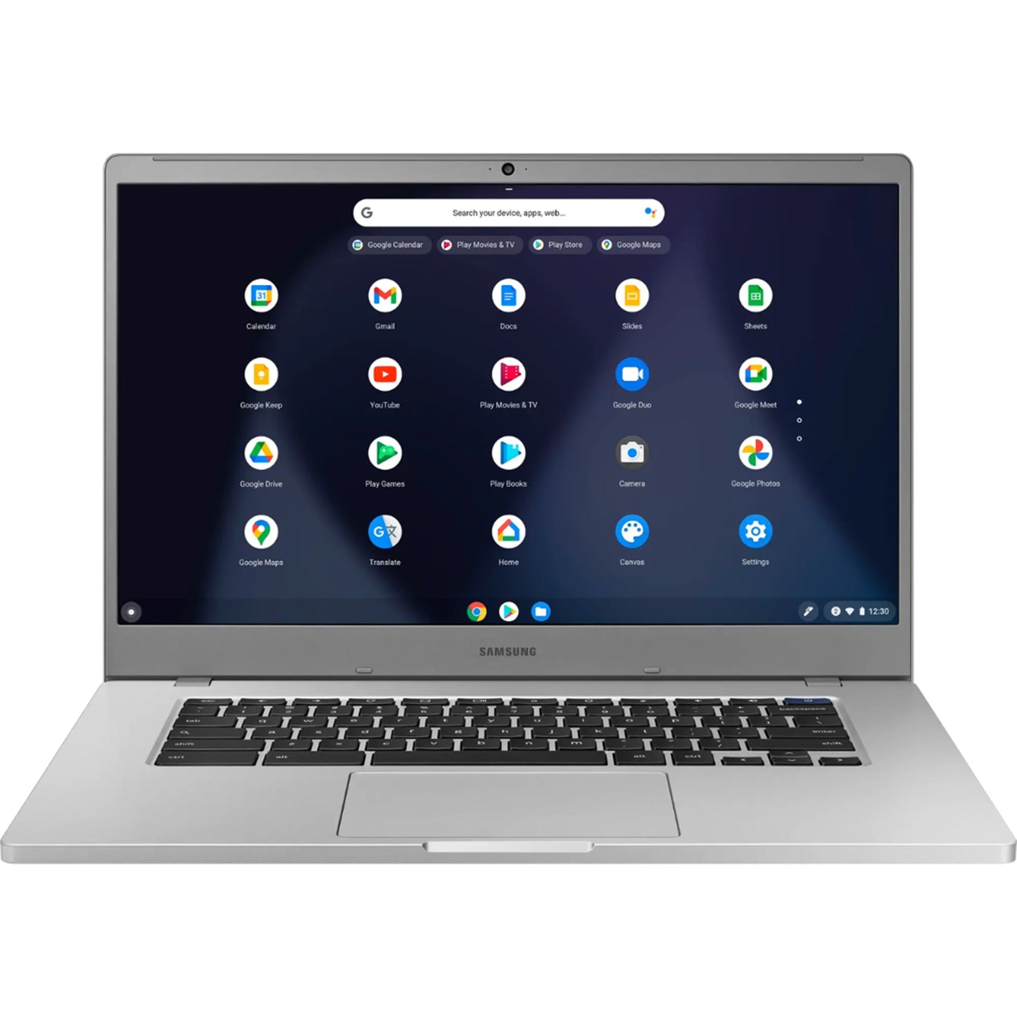 Samsung 4+ Chromebook: Browse the web and finish assignments with this 15.6-inch Samsung Chromebook 4+ notebook. An Intel Celeron processor provides the power to tackle everyday computing tasks, and the 4GB of RAM support smooth multitasking. This Samsung Chromebook 4+ notebook has 32GB of flash memory that accommodates files and documents and offers fast boot times.