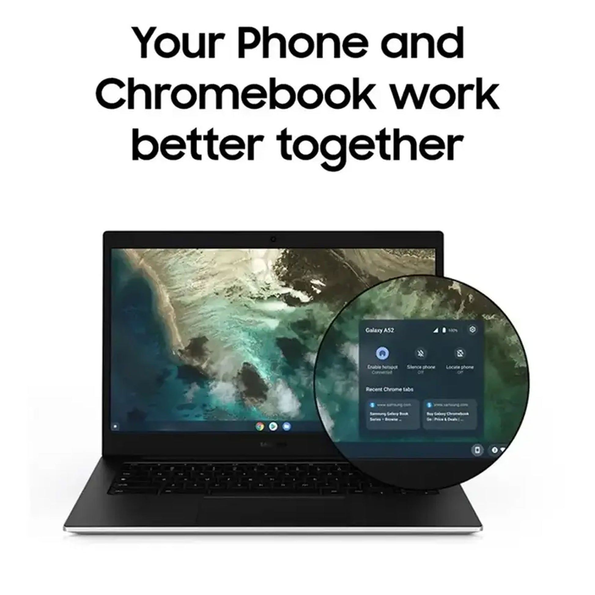 - Phone and Chromebook work better together - With Nearby Share on Chrome OS, you can easily hand off files between your devices - no need to email yourself. Or, if your classmate also uses Chrome OS, you can easily zap a file to any of their devices. With Phone, you can easily control your Android phone from your laptop. Receive and respond to text messages, turn on your phone's hotspot or do not disturb - even if your phone is buried in your backpack.4
