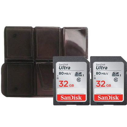 - 2x SanDisk 32GB SDHC Ultra 80MB/s