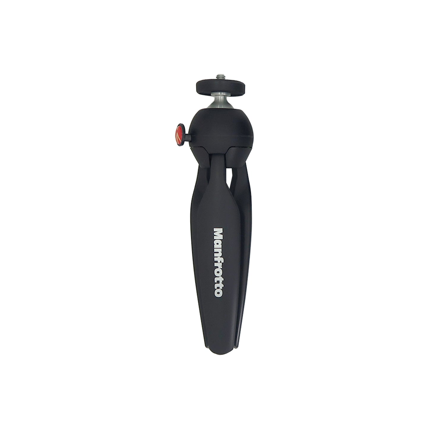 The Manfrotto PIXI Mini Tripod is a durably constructed lightweight mini tripod that features a ball head with a push-button locking mechanism that enables you to position and lock the ball head in one fluid, intuitive motion. Rubber feet ensure a slip-free grip on most surfaces and collapsible legs allow for convenient handheld vlogging that adds stability to your videos.