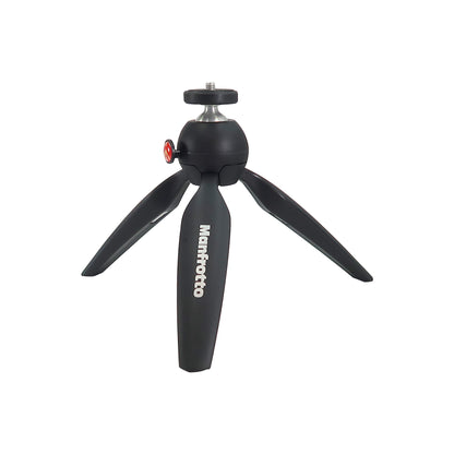 The Manfrotto PIXI Mini Tripod is a durably constructed lightweight mini tripod that features a ball head with a push-button locking mechanism that enables you to position and lock the ball head in one fluid, intuitive motion. Rubber feet ensure a slip-free grip on most surfaces and collapsible legs allow for convenient handheld vlogging that adds stability to your videos.