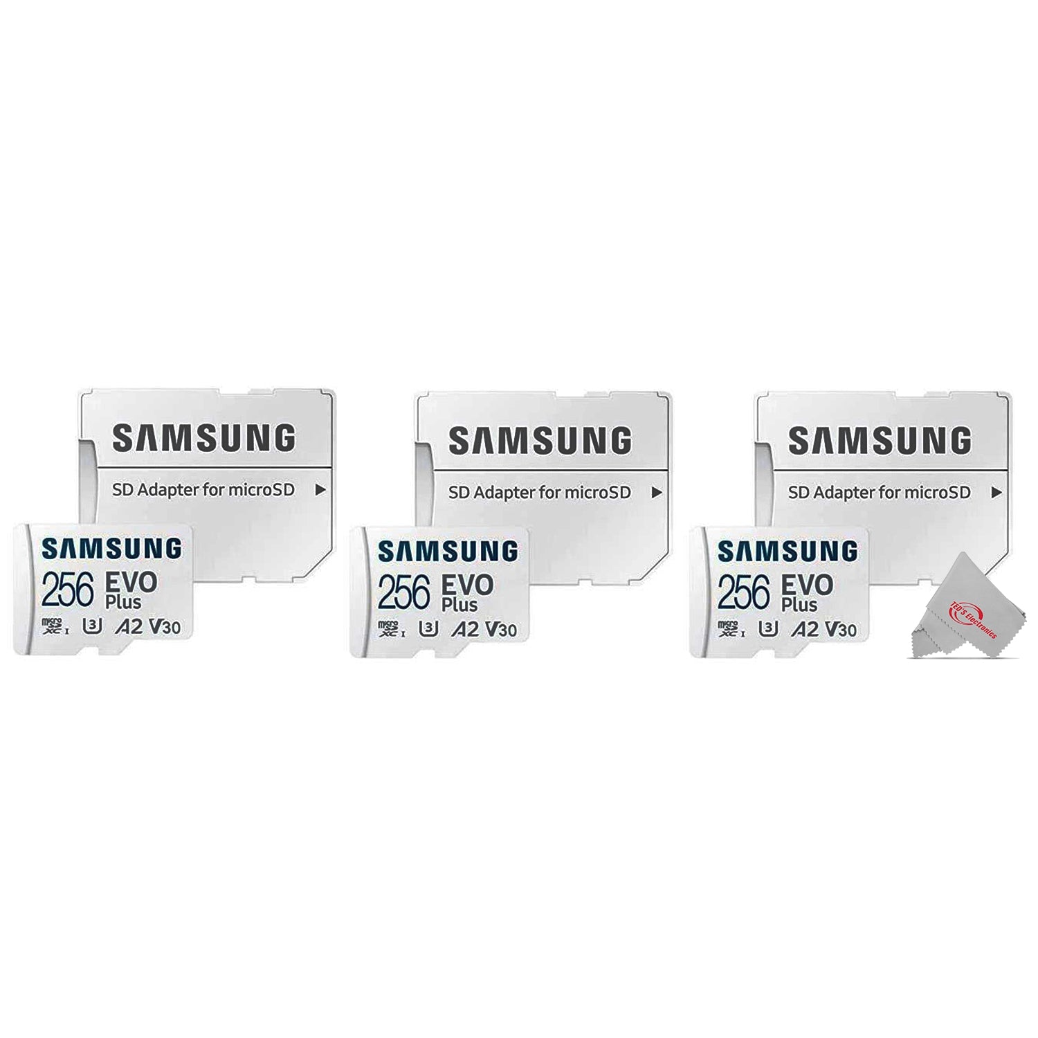 The Kit Includes: Samsung EVO Plus MicroSD 256GB, 130MBs Memory Card with Adapter - 3 Units