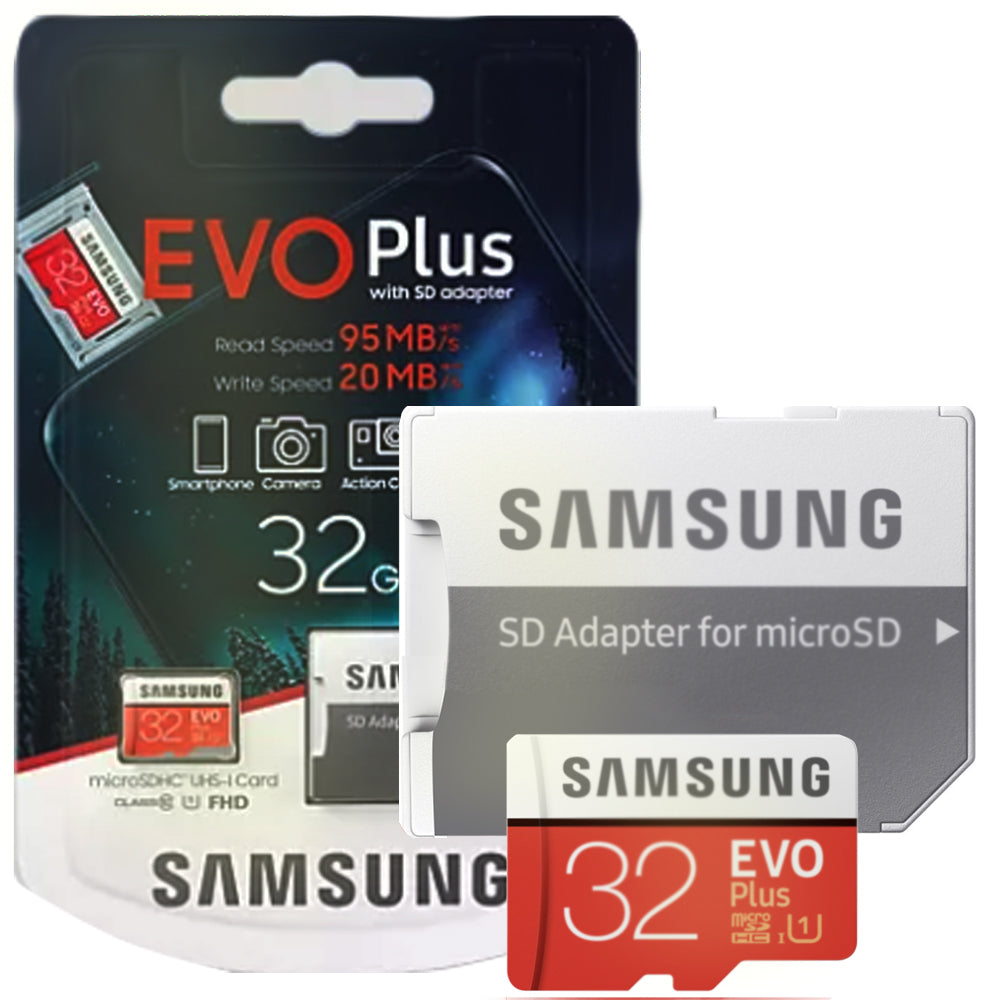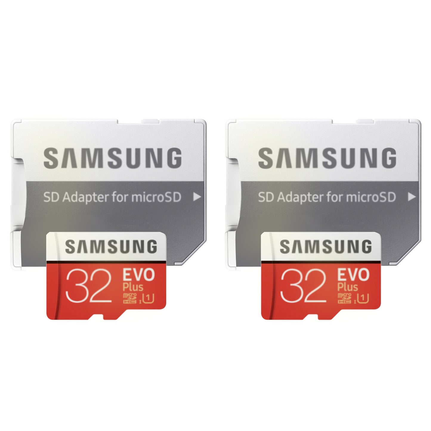 2x Samsung 32GB EVO Plus UHS-I microSDHC Memory Card with SD Adapter