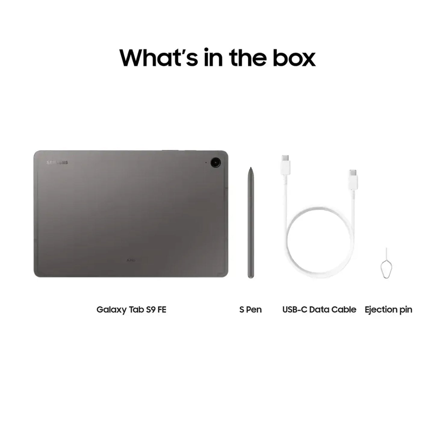 Meet Galaxy Tab S9 FE Wi-Fi, a powerful tablet that makes adventure more fun. Explore a new world with Tab S9 FE Wi-Fi. This perfect introduction to tablets boasts a powerful processor, a long-lasting battery and a dynamic screen to help you stay on top of your day. You’ll have plenty of room on your 10.9" screen to take on your to-do list, explore your creativity with the included S Pen or dive into your favorite entertainment. Tab S9 FE Wi-Fi features enhanced durability, making it one of the only water-and dust-resistant tablets on the market. And with Galaxy connectivity, you can easily share files to your phone or PC or take calls right from your Tab. Discover the power for adventure with Galaxy Tab S9 FE Wi-Fi.