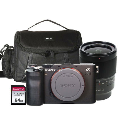 SONY ALPHA A7C MIRRORLESS CAMERA BLACK + SONY DISTAGON T* FE 35MM F/1.4 ZA LENS + FULL SIZE DSLR GADGET BAG + TRANSCEND 64GB SDXC CLASS 10 MEMORY CARD