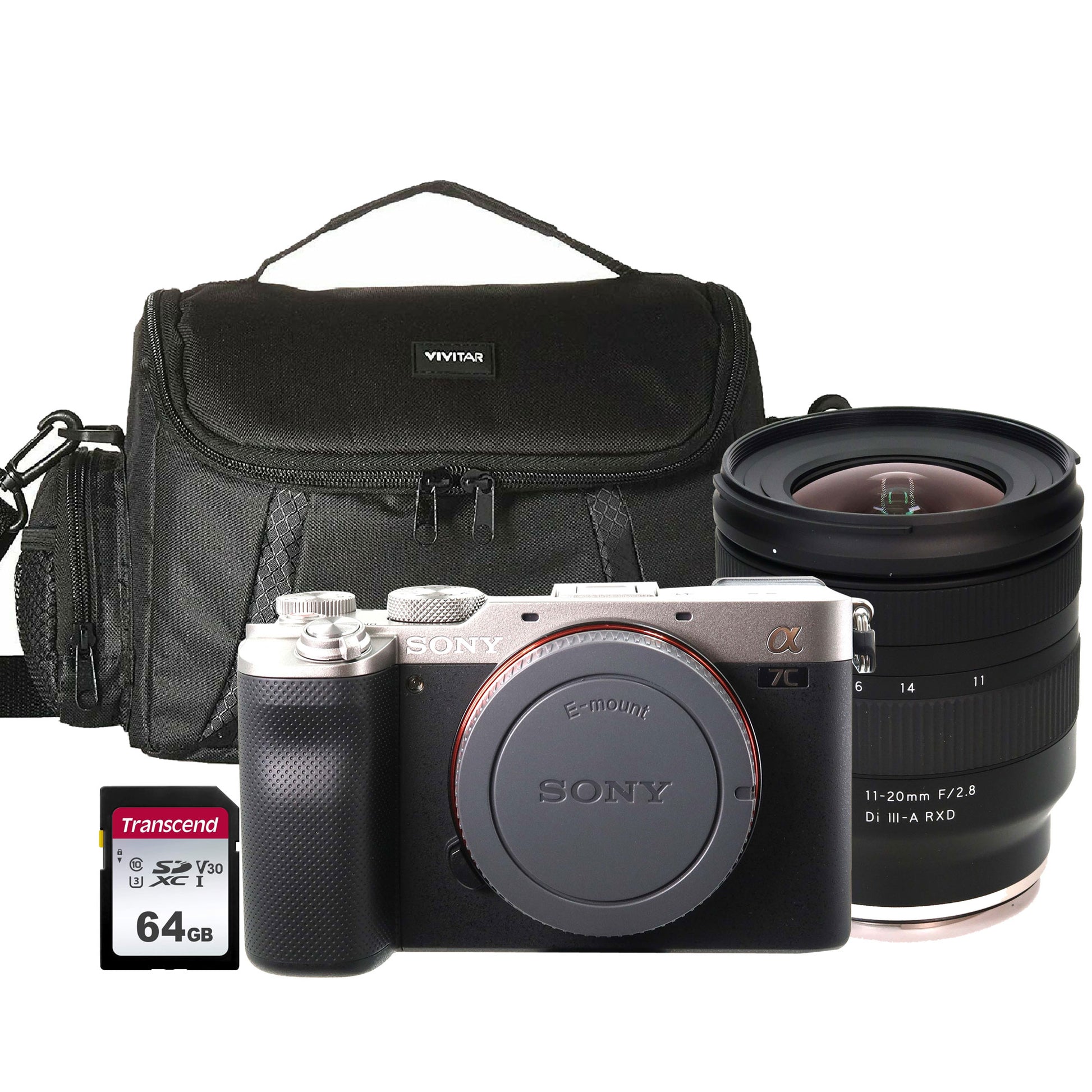 SONY ALPHA A7C MIRRORLESS CAMERA SILVER + TAMRON 11-20MM F/2.8 Di III-A RXD LENS + FULL SIZE DSLR GADGET BAG + TRANSCEND 64GB SDXC CLASS 10 MEMORY CARD