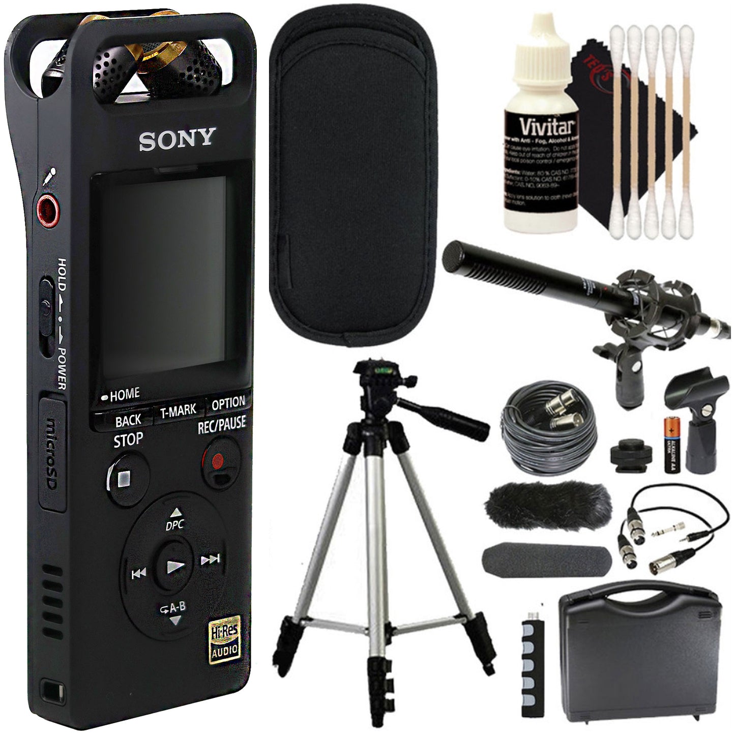 The PCM-A10 High-Resolution Audio Recorder from Sony is small, lightweight, and capable of recording audio from its built-in 3-way mics in up to 96 kHz/24-bit PCM or 320 kBps MP3 files. It has 16GB of internal memory and supports external memory via its microSD memory card slot. The PCM-A10's 3-way adjustable microphone array allows you to choose zoom mode to record meetings, XY for music sessions, and wide stereo for outdoor events.