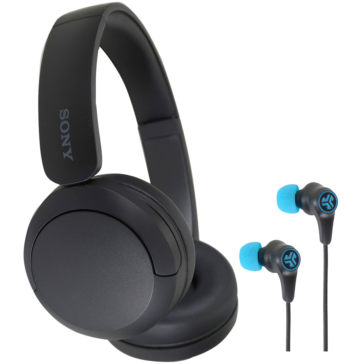 SONY WH-CH520 WIRELESS ON-EAR HEADPHONES WITH MICROPHONE BLACK + JLAB PLAY GAMING WIRELESS BLUETOOTH EARBUDS BLACK / BLUE